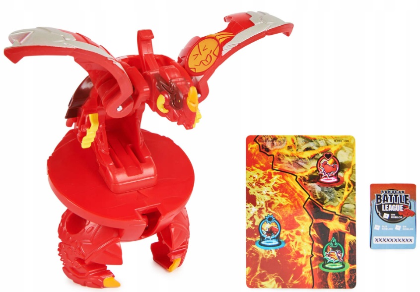 A la fois figurine d’action, jeu d’adresse, casse-tête et collectionnables, les boules Bakugan se déploient et se transforment en créatures fabuleuses lorsqu’elles sont envoyées correctement sur les cartes hexagonales aimantées.