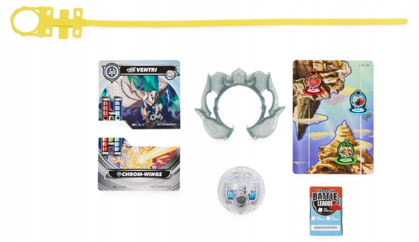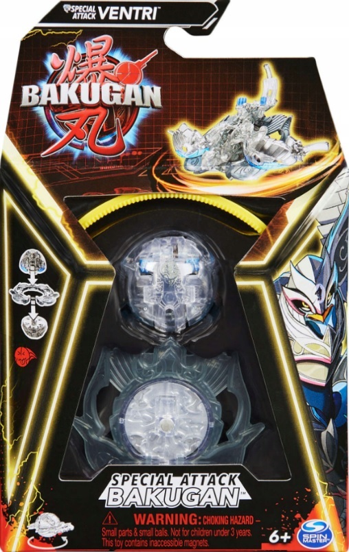 Comprend : 1 Bakugan Special Attack, 1 anneau de combat, 1 lanceur, 1 carte Portail, 1 carte Personnage et 1 carte Special Attack.