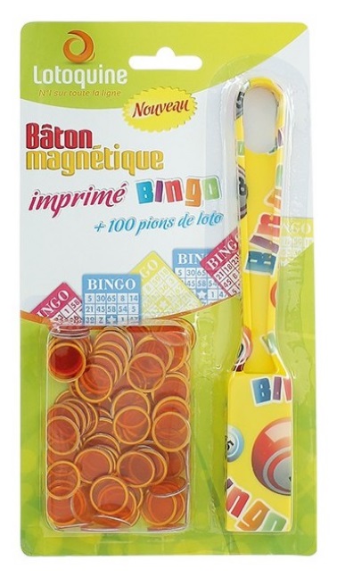 Baton magnétiques Bingo Jaune + 100 pions de loto - ramasse pions - Lotoquine