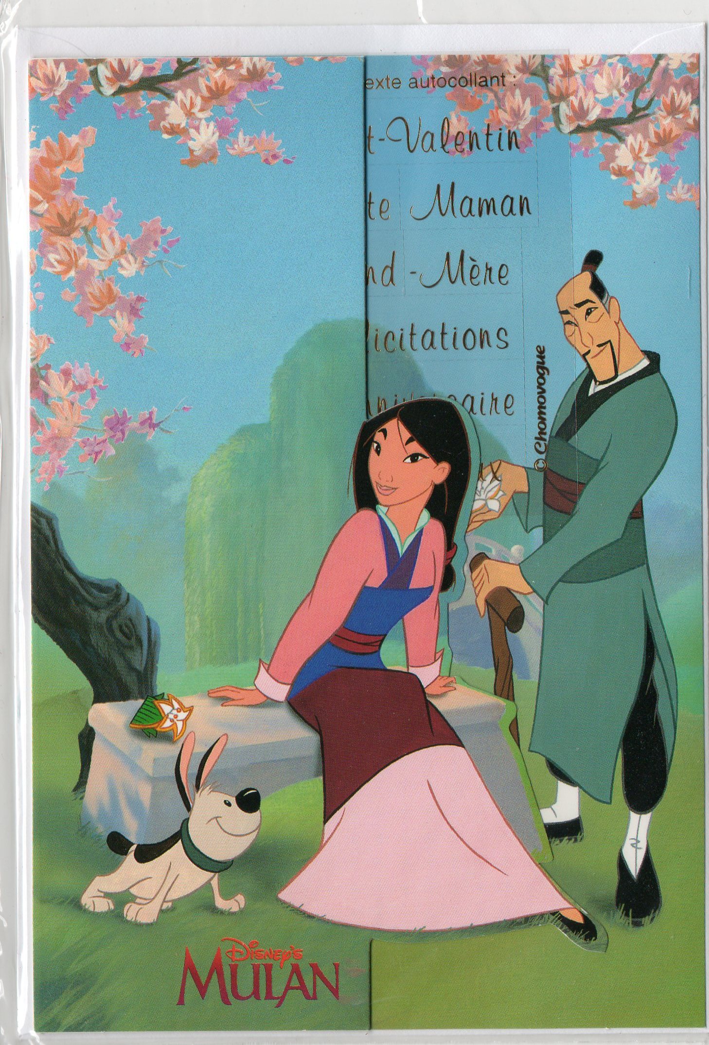 Carte félicitation Disney + enveloppe : Mulan et son père - Carterie (49)