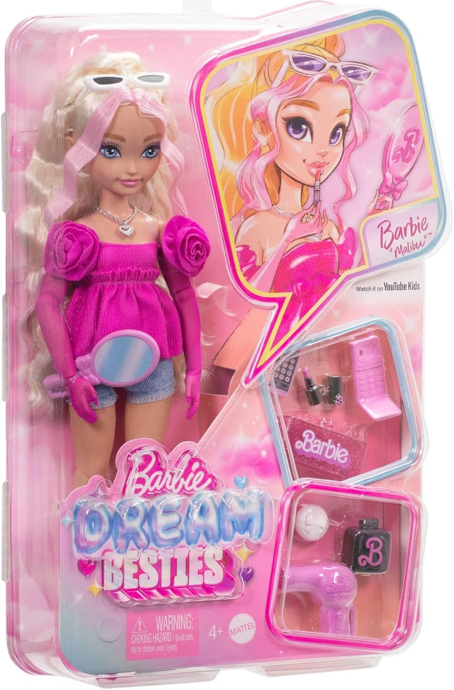 Coffret Barbie Poupée Blonde ondulés Malibu Équipe de Rêve + 11 accessoires - Poupée Mannequin - Mattel - HYC21