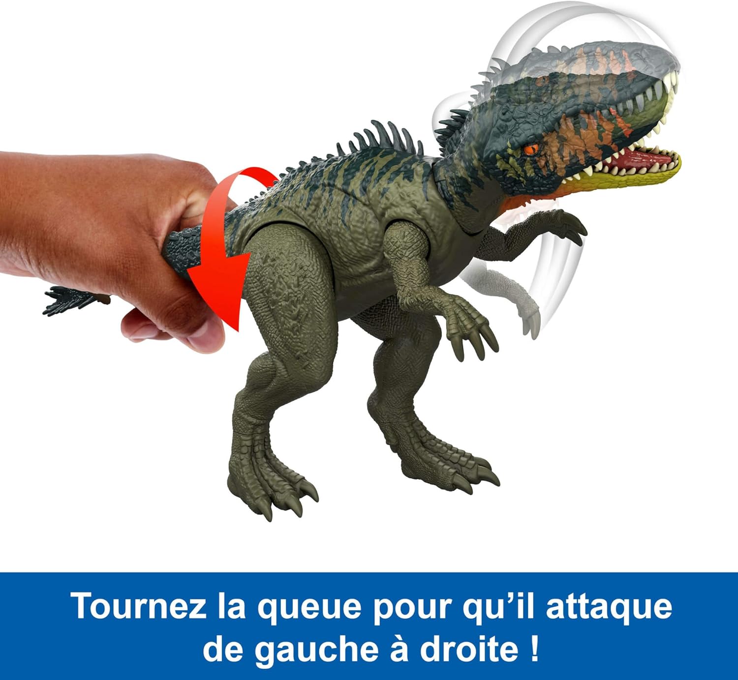 Cette figurine articulée de dinosaure Tyrannotitan Méga Prédateurs inspirée du film. Elle possède 2 coups spectaculaires activés grâce à sa queue ! Attaque de grande ampleur ! Faites bouger sa queue de haut en bas pour déclencher une morsure spectaculaire et d’un côté à l’autre pour qu’il assène des coups de bras ! Ce dinosaure issu d’une espèce géante mesure environ 35 cm de long et arbore une pose, des décorations et une texture authentiques. Il est prêt pour une séance de jeu acharnée ou pour prendre des poses intimidantes.