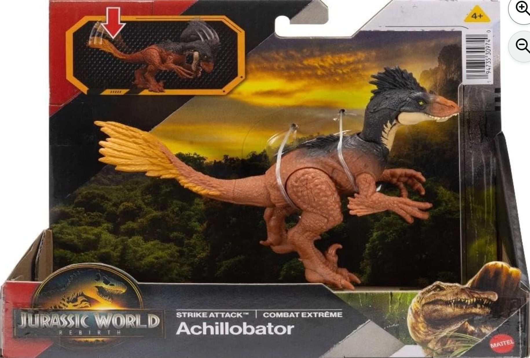 Coffret Dinosaure Rebirth Achillobator - Combat extrême - Dino articulé 15.5 cm - Jurassic World - Mattel