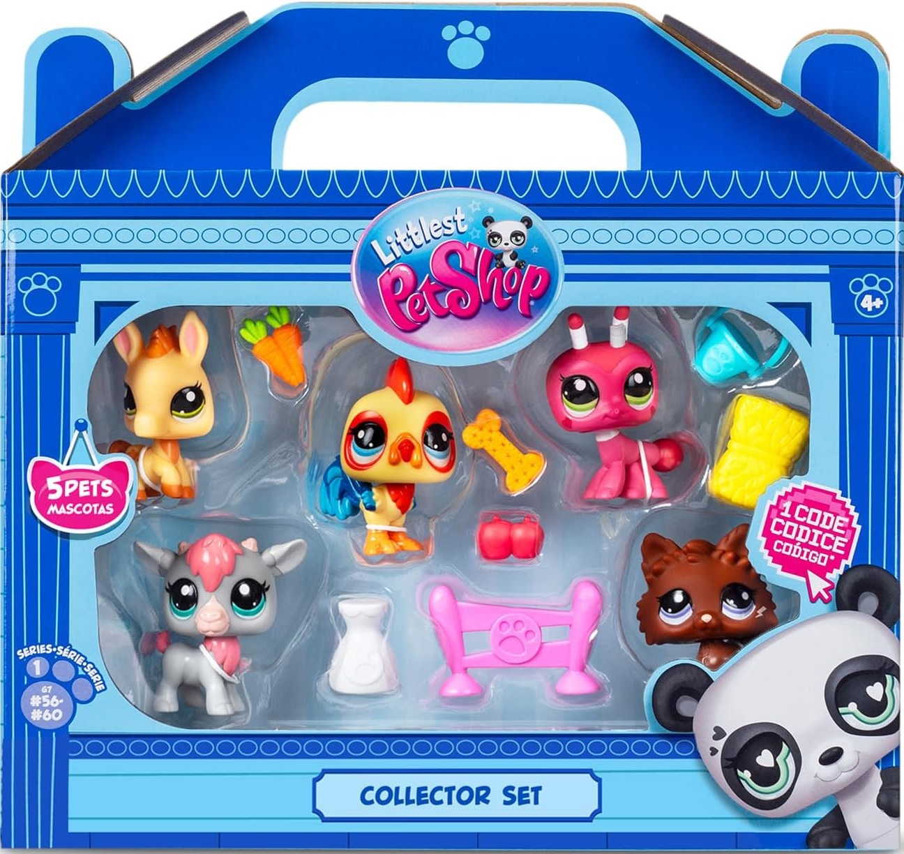Le Collector Set thème de la ferme comprend : 5 animaux de compagnie uniques avec la tête qui bouge, 7 accessoires mignons, 1 carte de collection, 1 code virtuel et 1 guide du collectionneur.