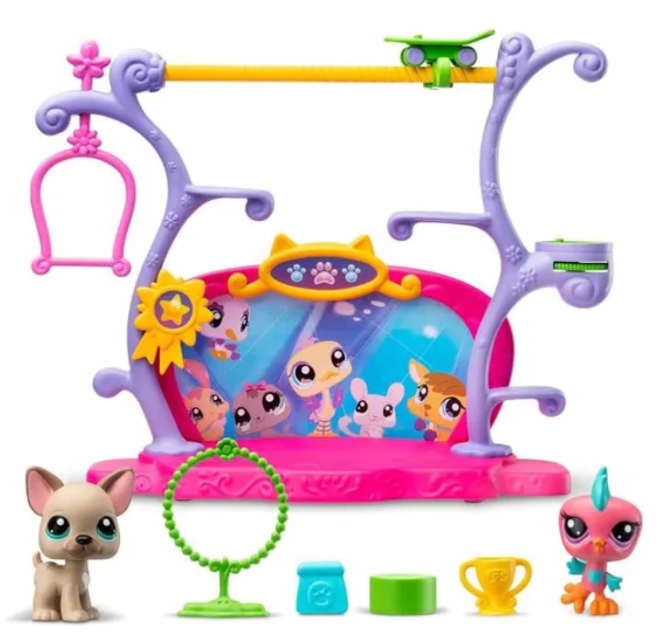 Découvrez ce coffret Les animaux ont du talent avec 2 pet shop, leurs accessoires avec une scène. Frenchie (67) et Bird (66) sont prêts pour un spectacle de talents.