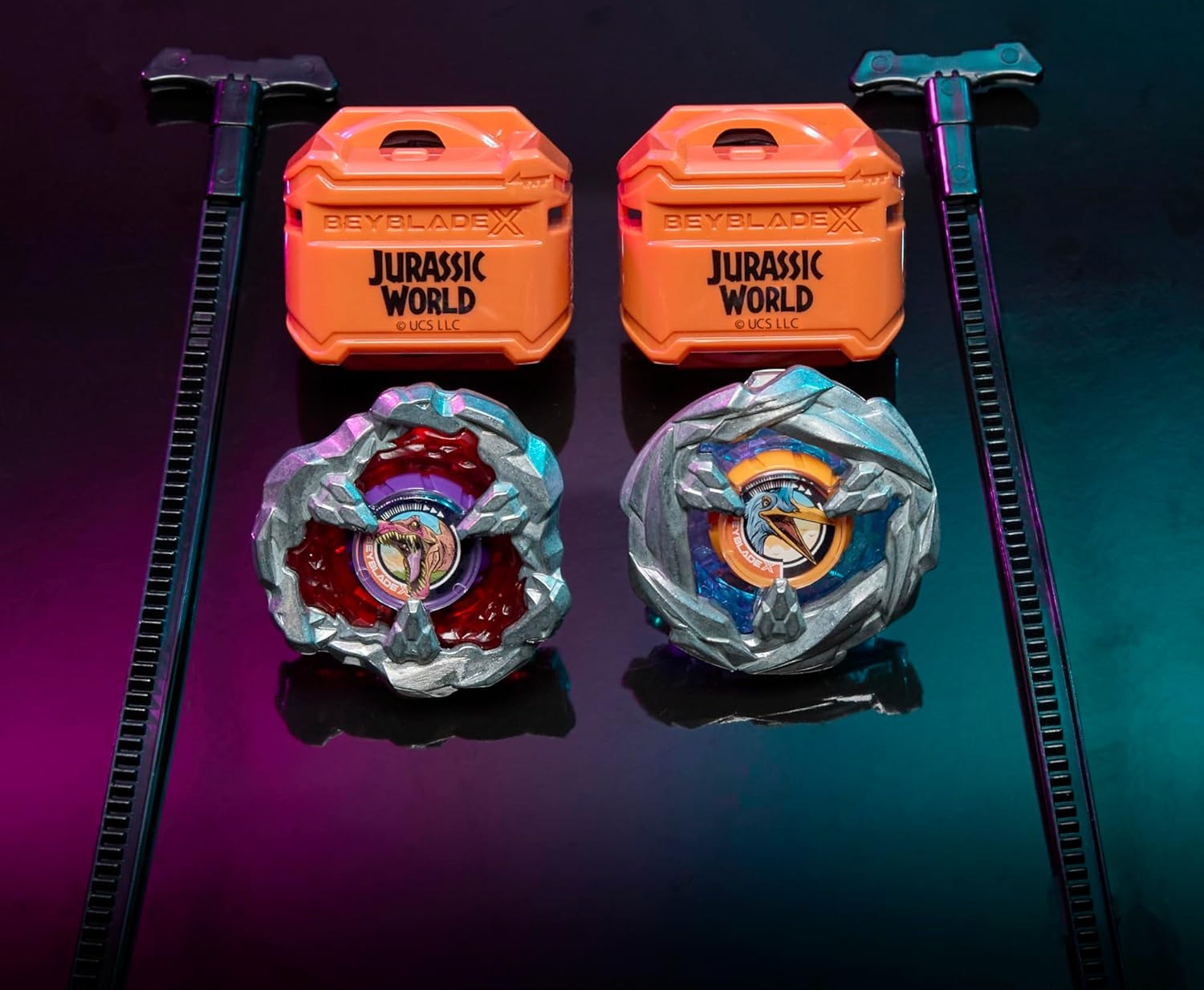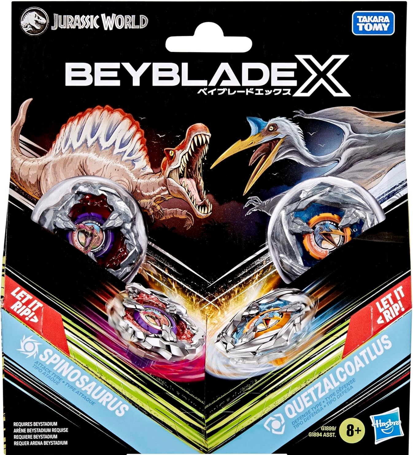 Coffret Pack 2 Toupies Beyblade X Jurassic World : Spinosaurus Contre Quetzalcoatlus - Type attaque et défense - Pack Toupie et lanceur - Hasbro G1899