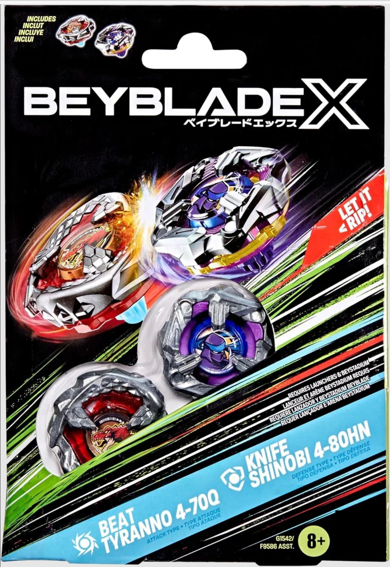 Coffret Pack Toupie Beyblade X : Beat Tyranno 4-70Q et Knife Shinobi 4-80HN - Type Attaque et défense - Dual Pack