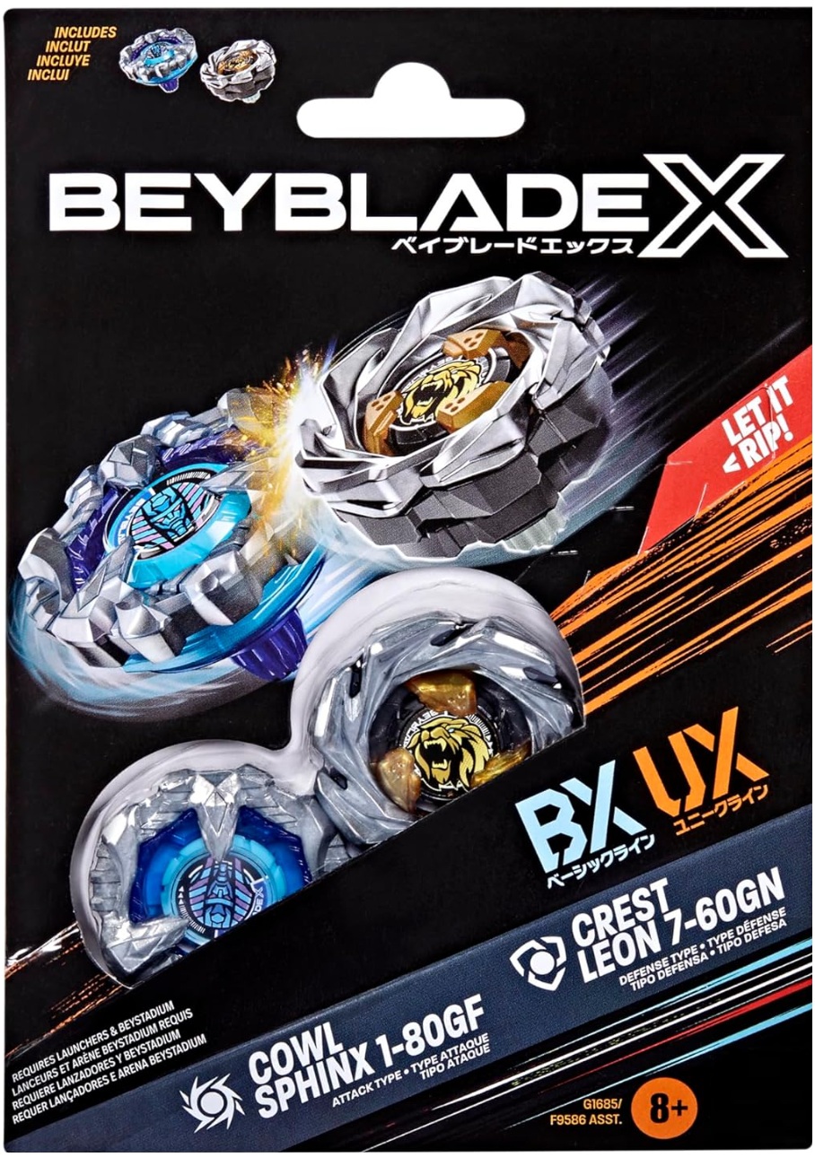 Coffret Pack Toupie Beyblade X : Cowl Sphinx 1-80GF et Crest Leon 7-60GN - Type attaque et défense - Dual Pack