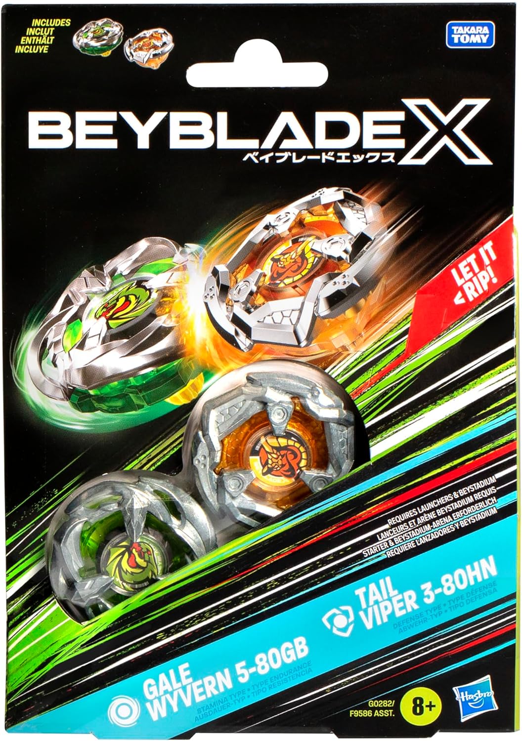 Coffret Pack Toupie Beyblade X : Gale Wyvern 5-80GB et Tail Viper 3-80HN - Type endurance et défense - Dual Pack - Hasbro G0282