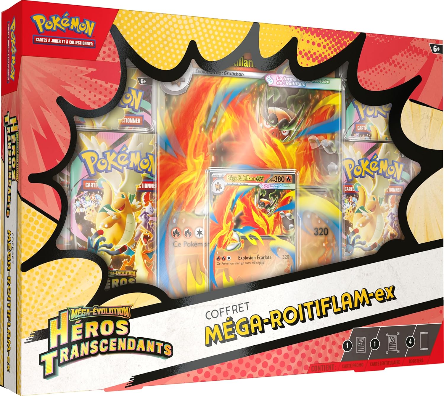 Coffret Pokemon Méga-Évolution ME2.5 : Héros Transcendants Méga-Roitiflam-ex - EX PV 380 - 4 Boosters - Cartes à collectionner Français