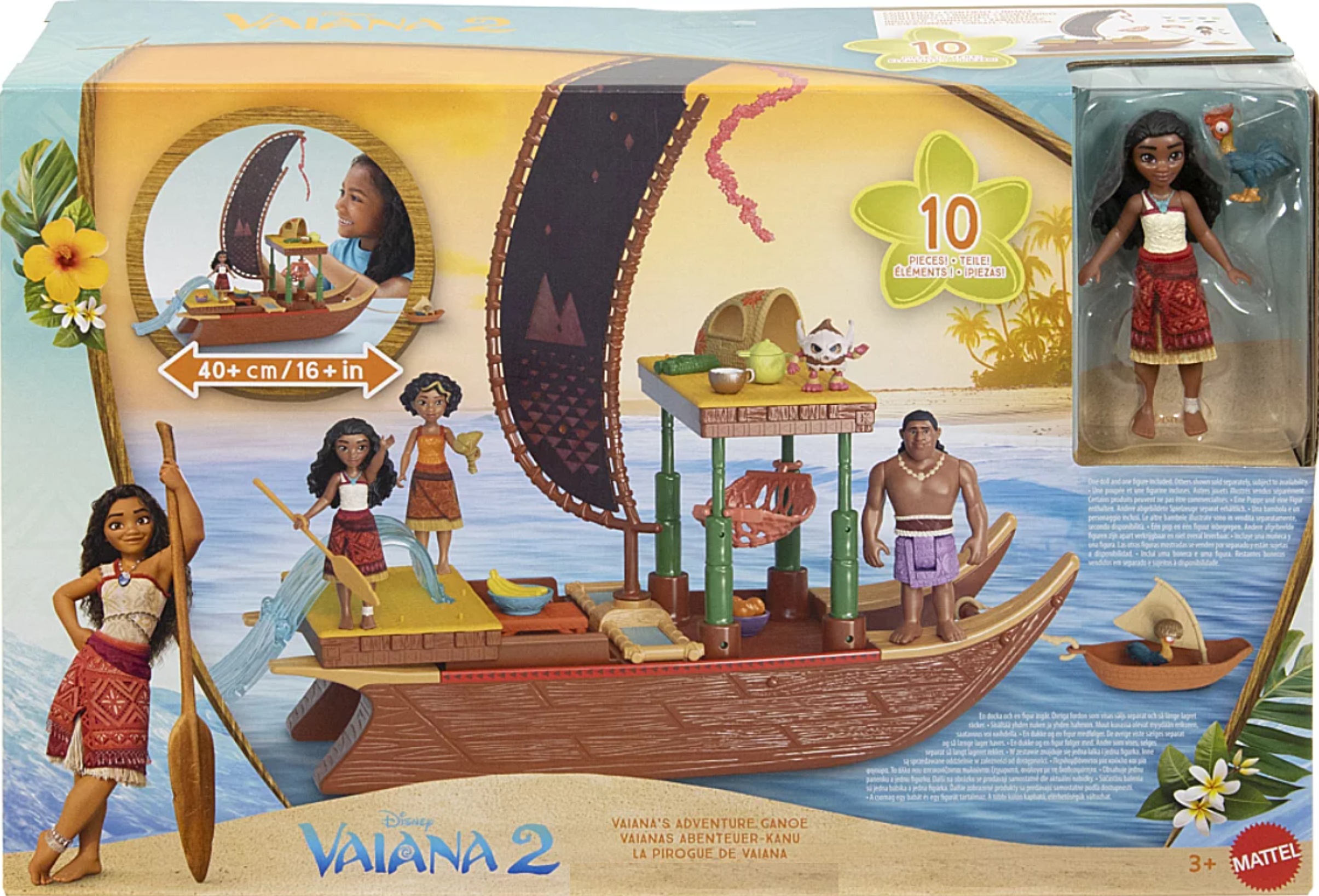 Coffret Vaiana 2 : Pirogue flottante 40 cm + Poupée Vaiana + 10 accessoires - Mini poupée mannequin - Disney Princesse - Mattel - JBT78
