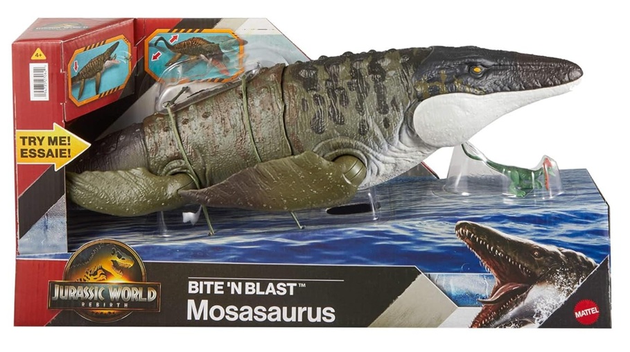 Attaque totale ! Avec sa conception aquatique distinctive et fidèle au film ainsi que ses nombreux points d’articulation, cette figurine articulée de dinosaure Mosasaurus inspire le jeu créatif.