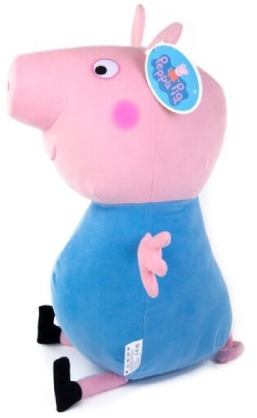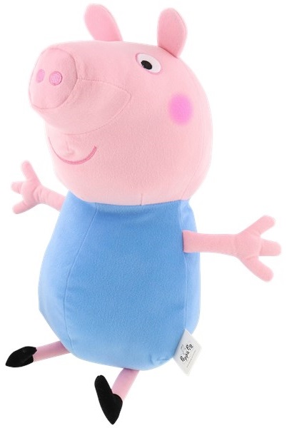 Voici une peluche Peppa Pig fidèle au personnage du dessin animé. La série Peppa Pig met en scène une famille de cochons, la famille Pig. George porte un habit bleu.