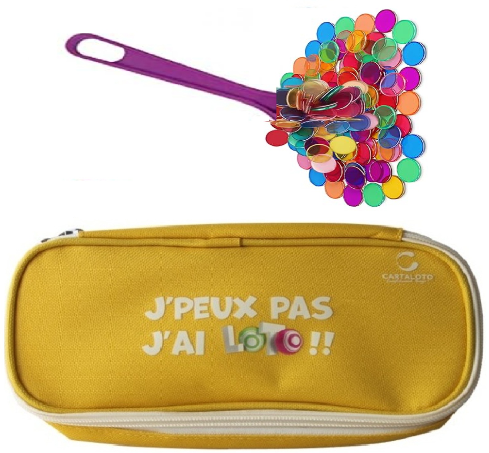 Indispensable ! Ce kit complet permet d’avoir sous la main vos accessoires de loto et bingo dans une trousse pratique et original au message imprimé "J'peux pas J'ai loto".