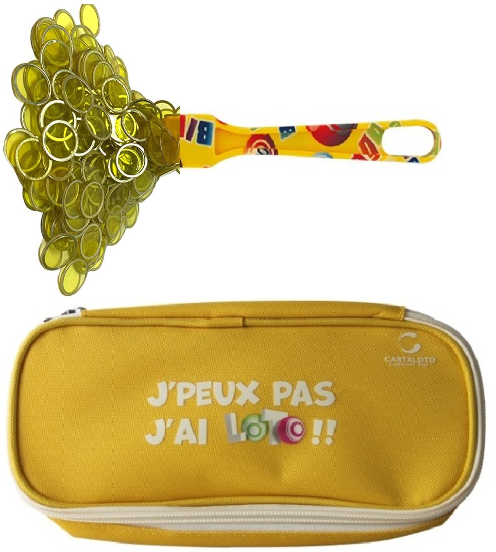 Kit loto bingo 3 en 1 : trousse Jaune + baton magnetique jaune + 100 pions - Cartaloto - accessoires jeu, materiel