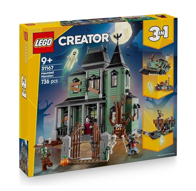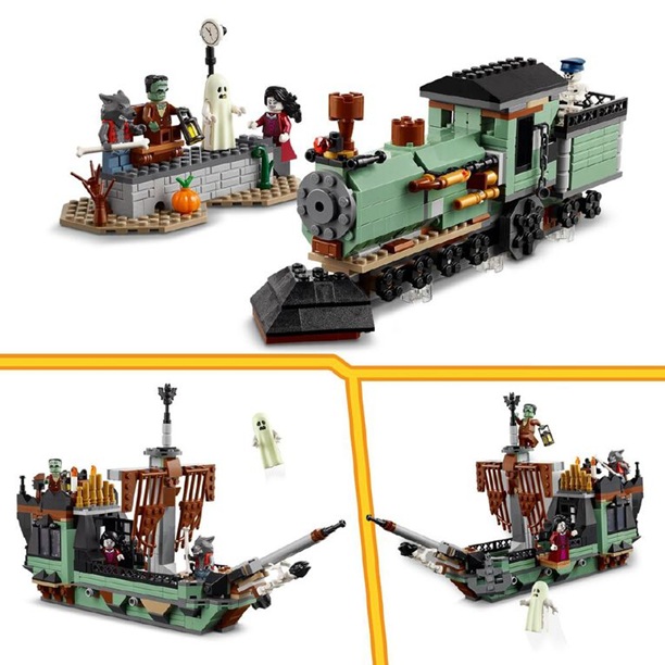 - Modèle 3 en 1 : le manoir hanté se transforme en un navire hanté ou un train hanté avec un quai.