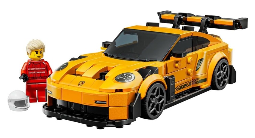 - Une minifigurine de pilote avec un casque et une combinaison Porsche Track Day Experience est incluse.