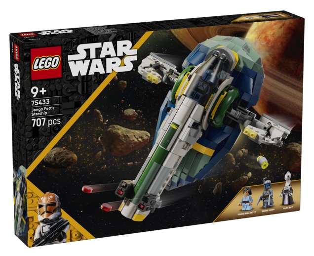 - 3 minifigurines sont incluses : Jango Fett avec 2 pistolets blaster et 1 jetpack, le jeune Boba Fett et Lama Su.