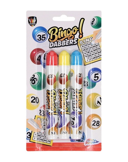 Lot de 3 marqueurs Bingo : bleu, jaune, rouge.