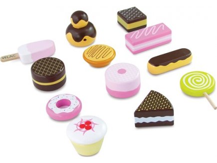 Mots clés : Accessoires pour marchande de pâtisserie, Assortiment gâteaux pour cuisine dînette, Set de pâtisseries en bois, Aliments factices en bois, Ma jolie pâtisserie vilac, Nourriture factice de dînette, Jouet pour épicerie marchande dînette