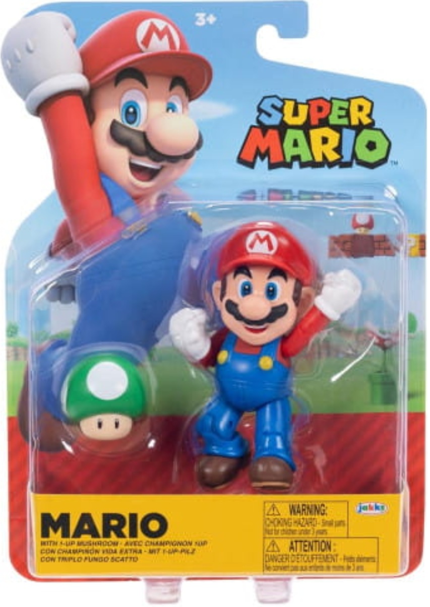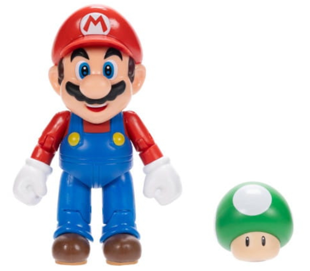 Mario avec Champignon 1UP : Figurine Super Mario 10 cm - Personnage Nintendo articulé - Jakks