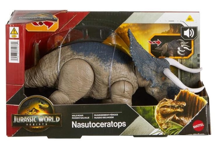 Attaque et rugissement ! Inspiré du film Jurassic World Renaissance, ce Nasutoceratops est capable de lancer des attaques particulièrement agressives dans n’importe quelle direction. Son rugissement des plus féroces contribuera à de trépidantes histoires de dinosaures !