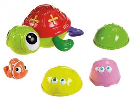 Quand le bain est fini, tous les jouets s'emboitent les uns dans les autres pour un rangement facile jusqu'au prochain bain.