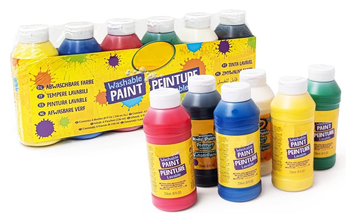 Ce set contient 6 bouteilles de peinture lavable de 236 ml chacune.