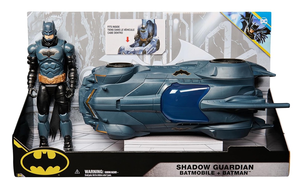 Ce coffret comprend une superbe Batmobile noire avec une figurine de Batman articulée dans son costume spécial de Shadow Guardian.