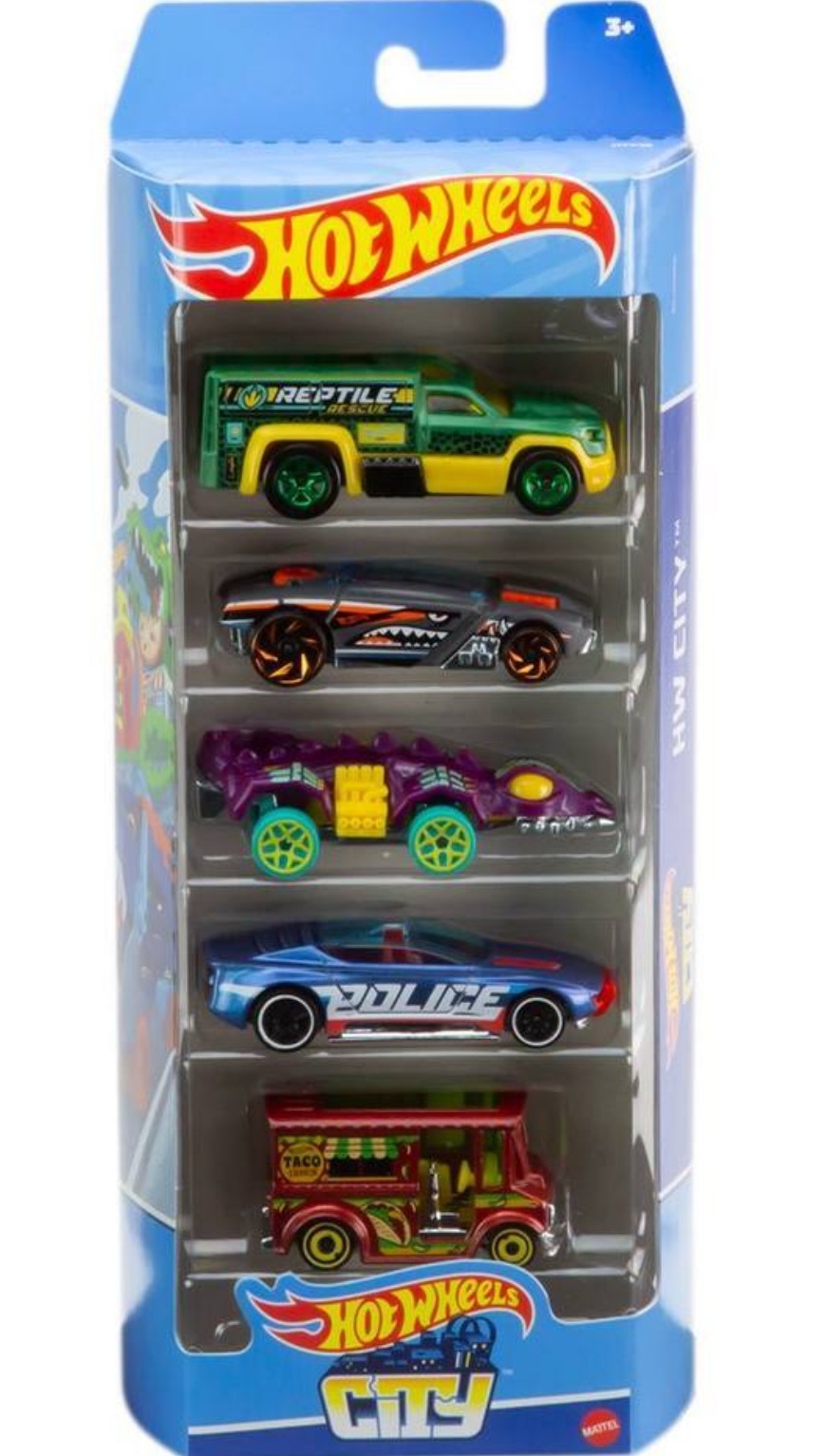 Ce coffret à thème composé de 5 véhicules est idéal pour compléter l’univers de jeu pour Hot Wheels de votre enfant.