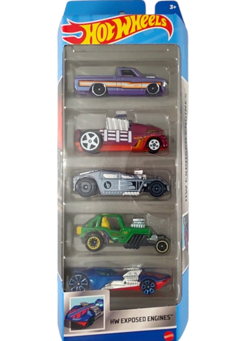 Pack de 5 véhicules Hot Wheels : HW Exposed Engines - Mattel - HLY79 - Set voitures miniatures