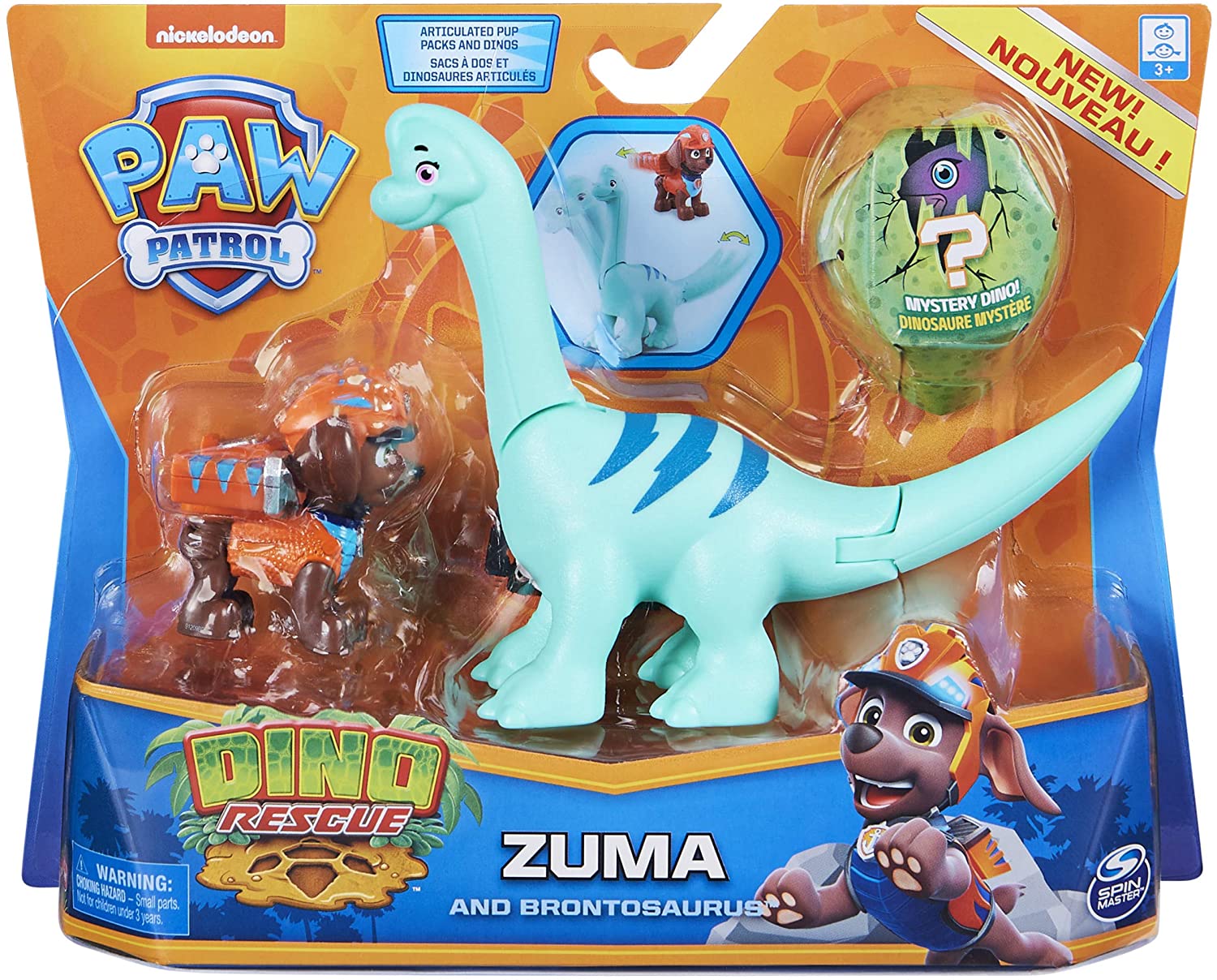 Pat patrouille dino rescue zuma et son brontosaure + dinosaure mystere - figurine chien - Spin master - 20129716