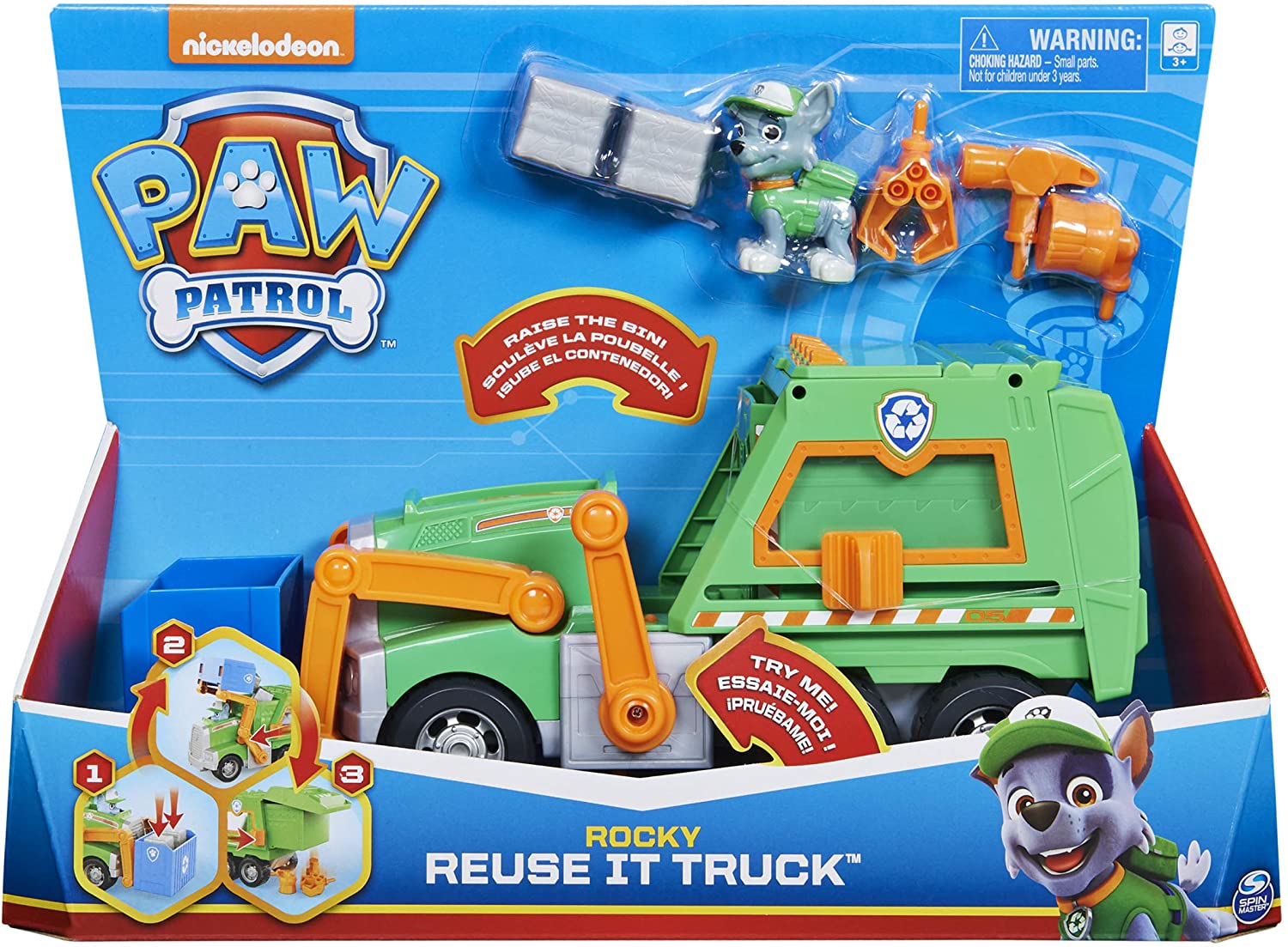 Le Camion de Recyclage de la Pat' Patrouille permet de partir en mission recyclage avec Rocky, le chiot pour qui les ordures sont de vrais trésors. Vêtu de son uniforme d'expert en reclycage, Rocky est prêt pour vivre avec vous de belles actions écologiques..