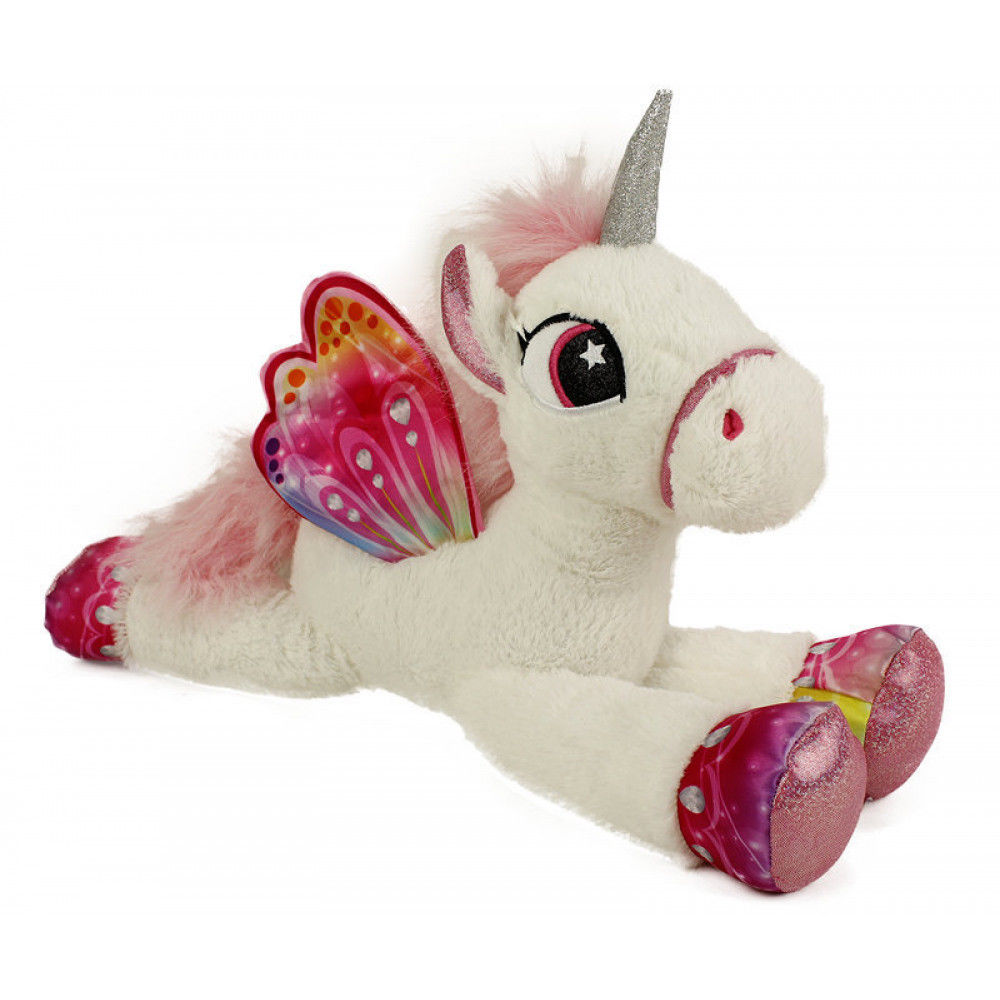 Peluche géante : Licorne couchée blanche avec ailes 88 cm - Animal fantastique