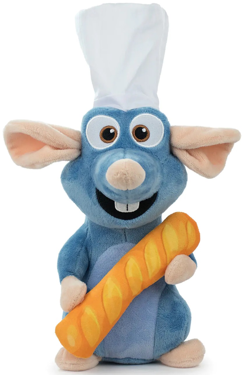 Peluche Rat Rémy Chef de Cuisine avec Baguette de pain 31 cm - Ratatouille - Doudou licence Disney