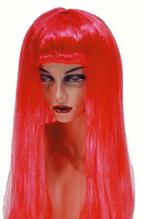 Perruque femme cheveux long couleur rouge néon - Accessoire déguisement - Costume
