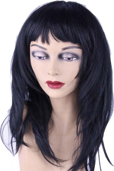 Mots clés : Perruque de déguisement, Perruque longue noire, Perruque de carnaval, Perruque déguisement pas cher, Perruque noire à frange, Perruque de fête, Perruque adulte