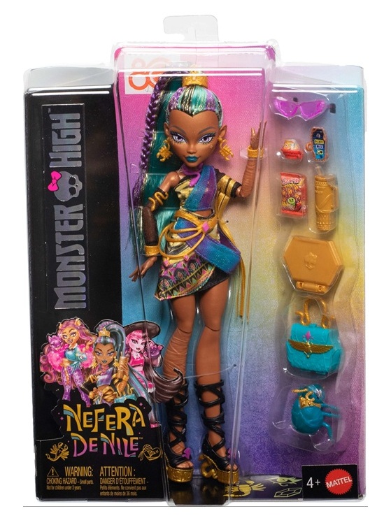 Fais la connaissance de Nefera De Nile ! Sœur aînée de Cleo De Nile, cette poupée Monster High est une momie royale au cœur d’or, dans tous les sens du terme. Elle est fournie avec 7 accessoires terriblement chics et est accompagnée de son adorable animal de compagnie, un scarabée égyptien prénommé Lavish.