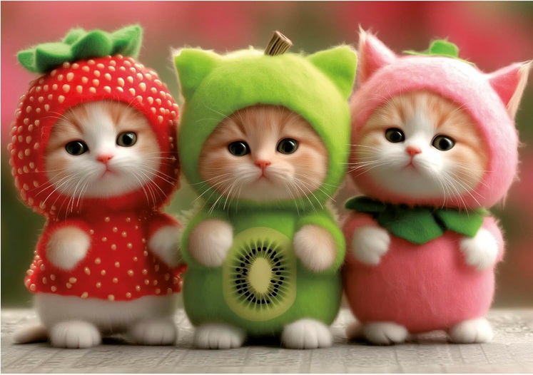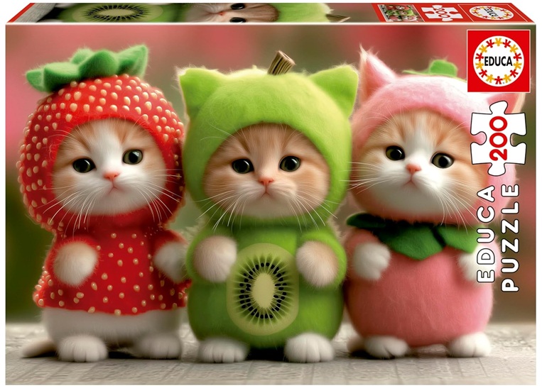 Puzzle 3 mignons chatons fruités 200 pièces - Photo Bébés animaux, petits chats - Educa - 20496