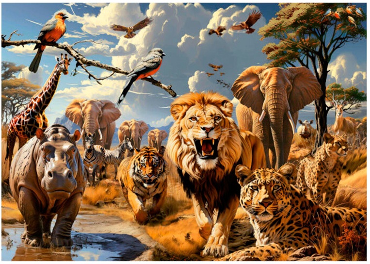 Puzzle Animaux sauvages en peinture 1000 pieces - Safari africain, savane - Educa - 19920