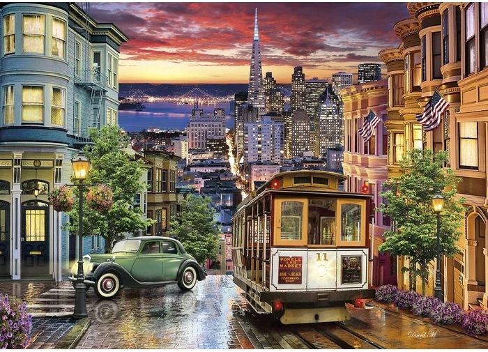 Puzzle Coucher de soleil sur San Francisco, Etats-Unis 3000 pièces - Cable Car & Ville USA - Clementoni - 33547