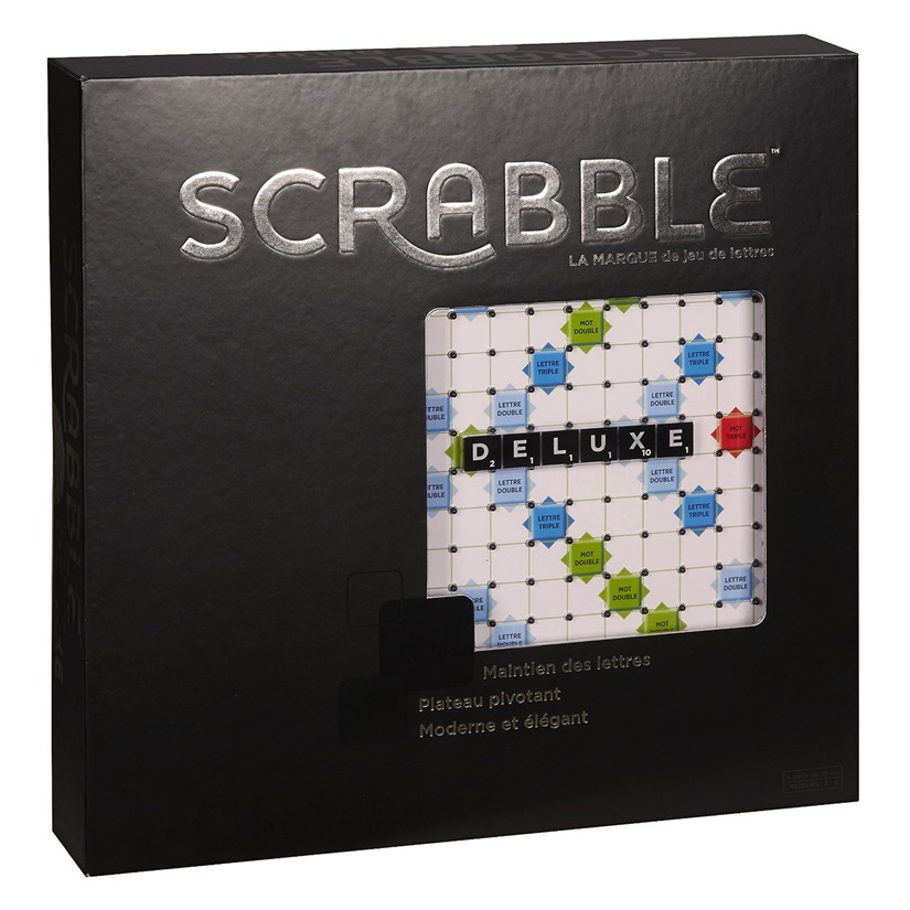 Le Scrabble Deluxe est à la fois très esthétique et très fonctionnel, avec un élégant plateau aux couleurs modernes décoré de noir, comprenant un élément pivotant et un tiroir.
