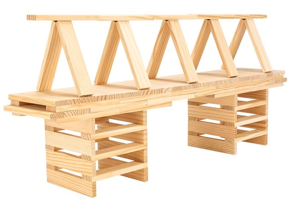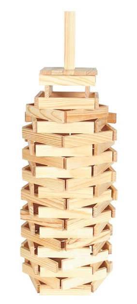Une boîte en carton de 100 planchettes en bois massif naturel pour réaliser des constructions vertigineuses.