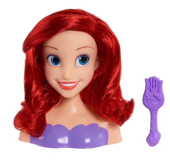Cette petite tête à coiffer de Ariel, La petite sirène du conte Disney, ravira toutes les petites coiffeuses.
